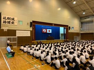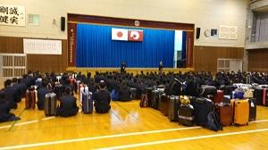 本日から4日間の日程で1年生が修学旅行に出発しました。病気等もなく、全員が朝7時30分の出発式に参加し、8時15分本校を出発しました。
