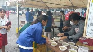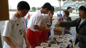 保護者の皆さんの炊き出しにより、ゴールした後には暖かい豚汁が振る舞われました。小雨の中頑張って走った後の豚汁は格別でした。ありがとうございました。
