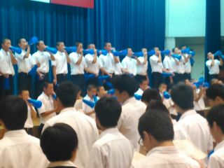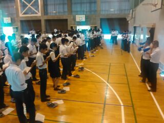 雨のために科毎に練習を行った後、体育館で初めて全体練習を行いました。機械科2年の塩田の素晴らしいリードで、初めてとは思えないほどの盛り上がりでした。明日が最後の練習になるかと思います。気合いを入れていきましょう!