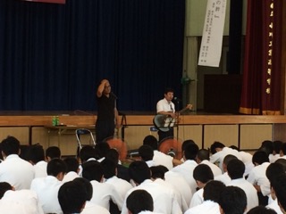 暑い中でしたが、生徒は真剣に話を聞いていました。