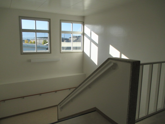 工業センター棟の老朽化に伴い、6月中旬から改修工事を行ってきましたが、11月12日、ついに完成しました。トイレの洋式化や省エネエアコンへの更新、そして大部分の床や壁を木質化し、木の温もりあふれるとても素敵な工業センター棟となりました。