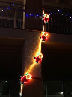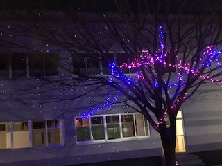15日(土)の北辰祭に向けて生徒会を中心に、この夏に新しくなった工業センター棟ピロティ周辺をイルミネーションで飾っています。サンタクロースも登場し、日一日とバージョンアップしています。北辰祭においでいただき、ご覧いただければと思います。