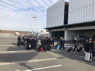 9時30分頃に熊本空港に到着し、現在保安検査が終わり搭乗口で待機しています。建築科、土木科、設備工業科が前半組として出発し、機械科と情報電子科が後半組として羽田空港に行きます。