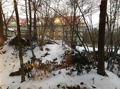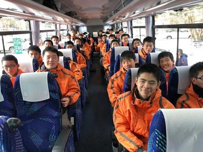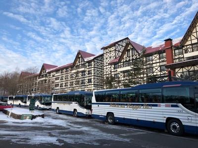 おはようございます。修学旅行2日目になりました。バスガイドの方の話では7時現在の外の気温は-14度ということでタオルを回すとカチカチに凍る程の寒さです。朝食を食べ、今からスキー場に移動します。天候も良好です。