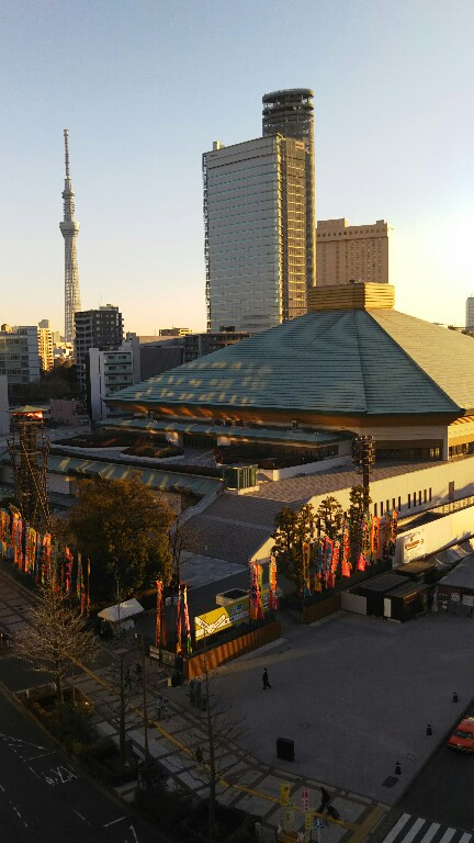 ホテル前は両国国技館です。