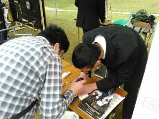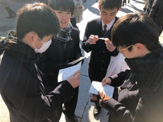 午後の合格者説明会では、桜が咲き始めるいい天気の中でおこなわれました。