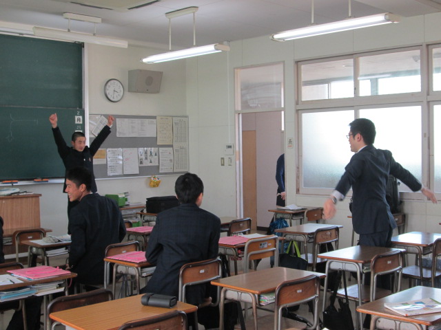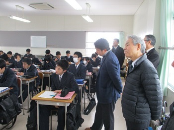卒業生達は最後の学校生活ということで、各クラスで集合しし、お世話になった保護者へ方へお礼を言ったり、クラスの友人達と楽しく過ごしていました。