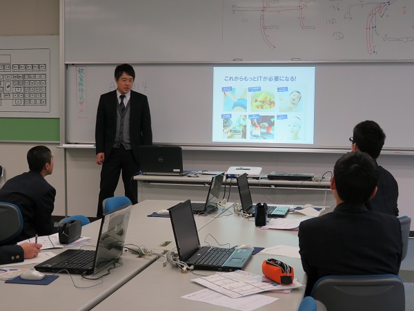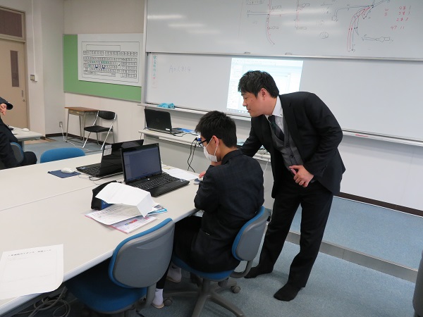 「コンピューター関連の職業A」の講座では、実際にパソコンを使いプログラムを組むなど実践的な体験をさせていただきました。一生懸命取り組む姿が印象的でした。