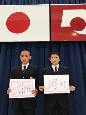 1学年の1年間皆勤者102名、精勤者32名が決定しました。皆勤者とは欠席、遅刻、早退全て皆無であるという者で、精勤者とは欠席はなく、遅刻・早退が合計3回以内の者です。年間を通して学年の約70%以上の生徒が欠席なく登校していることは、実にすばらしいことです。科別では特に機械科が皆勤者34名、精勤者3名で、クラスの90%以上の生徒が欠席なしという状況でした。2学年になっても基本的な生活習慣で、落ち着いた学校生活を送って欲しいです。なお、写真は表彰代表の皆勤者機械科白石くん(鏡中出身)、精勤者建築科澤口くん(下城南中出身)です。