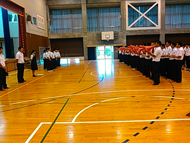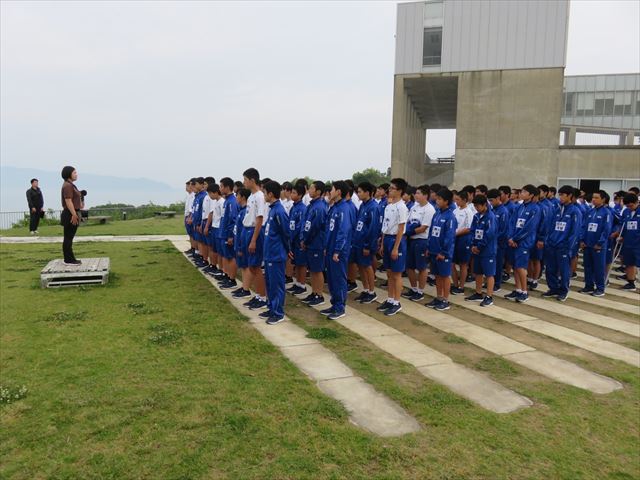 という目的のもと行われました。初日の研修では校長先生からの講話をはじめ、教頭先生のラグビーを通した集団行動のあり方、夜の研修では進路指導や生徒指導についての講話などを通して、これからの学校生活を有意義に送るための大切な指針を得ることができました。2日目は天候にも恵まれ、マリン活動を通して各クラスの団結も深めることができました。今回の経験を通して学んだ事を今後の学校生活に活かしていけるよう頑張っていきますので、今後ともご支援ご協力のほどよろしくお願いします。