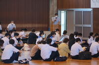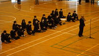 MCの中で、番匠谷さんから、体育館に座っている生徒に「お尻痛くないですか?」とお心遣いのコメントを頂きました。