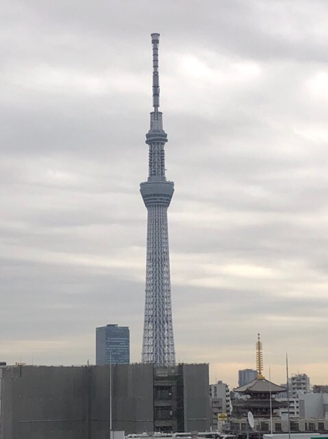 おはようございます。最終日となりました。これから浅草寺周辺の自主散策となります。ホテルの部屋の窓からは、スカイツリーが見えます。曇ってはおりますが、雨の心配はなさそうです。