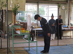 鞴(ふいご)祭りとは、火・鉄業の神に工場を清めてもらい、授業での安全を祈願します。