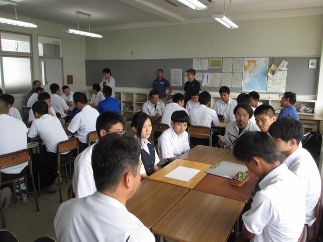 建設業協会宇城支部様の御協力の下、土木科2年生で進路講話を実施していただきました。冒頭の15分は、建設業界の現状などについて御講話いただき、後半は5グループに分かれて、グループディスカッションを行いました。進路の希望や建設業のイメージ等の意見を出し合い、良いディスカッションになったようです。建設業協会の皆様には大変お世話になり、ありがとうございました。今後の進路指導に活かしていきたいと思います。