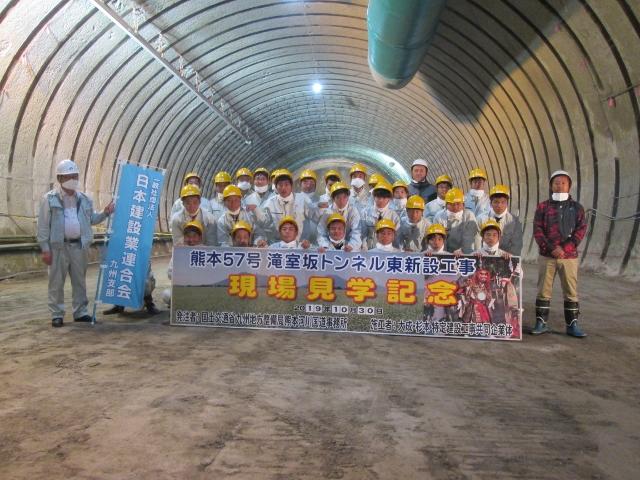 日本建設業連合会の御協力のもと、阿蘇の滝室坂トンネル工事の現場見学会に土木科2年生が参加をしてきました。午前中は河川国道事務所様、エイト日本技術開発様、大成建設様より工事の概要説明をいただきました。午後は、現場を見させていただき、2級土木施工管理技術検定試験の勉強で学んだ、トンネルのコンクリート吹き付け工事や支保工や覆工の現場を見て、説明をうけたことで、より深い学びをすることができたようです。