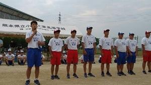 新チームで初めての公式戦であり、相手は第一高校。初戦の緊張感はあまり感じられず、野入(建築科2年、八代一中)の先発で始まった。初回の第一高校の攻撃で2点を奪われ、4回に1点差に縮めたが、5回表に1点失点し、良くない流れを感じた。しかし、5回裏に出塁を重ねながら、平川(建築科2年、松橋中)、松本(土木科2年、下城南中)、野入(建築科2年、八代一中)の連打で一揆に5対3と逆転した。さらに6回には上田(土木科2年、松橋中)、平川(建築科2年、松橋中)の適時打で9対3、さらに7回に1点とり、10対3でコールド勝ちした。3回戦は26日に翔揚高校とベスト8をかけて対戦する。