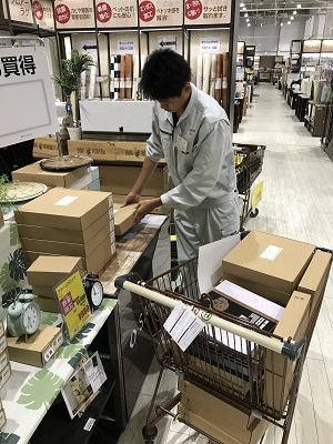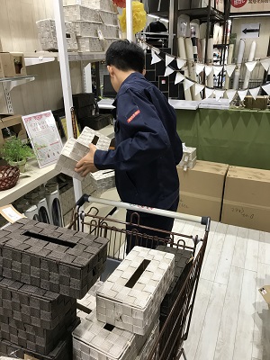 写真は店内の商品の並び替えをしている様子です。スタッフの方からとても助かっていると聞きました。