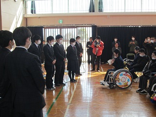 機械科の課題研究で生徒が製作したボッチャの贈呈式がおこなわれました。