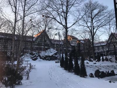 スキー教室午後の部が終了し、ホテルに到着しました。
