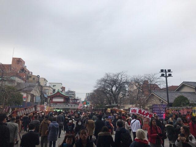 早速お参りする人、おみくじを引く人、お土産を買う人とみんな楽しんでいます!東京は少し肌寒いですが、3連休の初日ということもあり、多くの人で賑わっています。