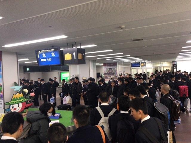 浅草を出発し、先ほど羽田空港に到着しました。解団式も終わり、これから飛行機に搭乗する準備をします。14時40分の飛行機で出発し、16時40分に熊本空港へ到着予定です。その後は17時30分に熊本空港をバスで出発。宇城市役所に18時15分到着し、学校に18時30分到着予定です。迎えに来ていただく保護者におかれましては準備をよろしくお願いいたします。