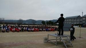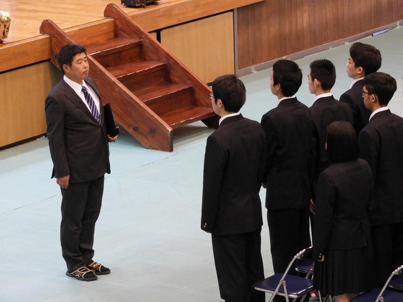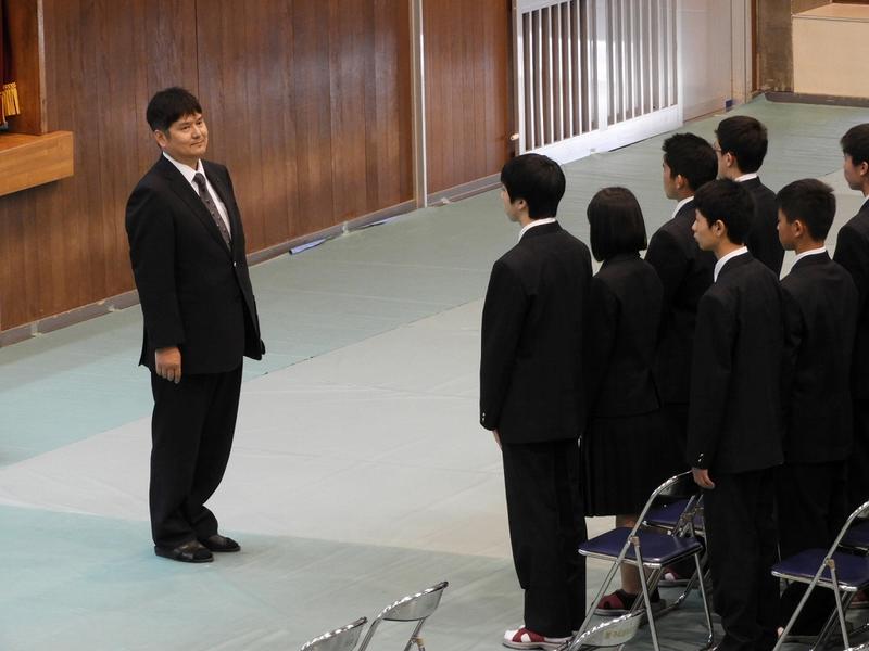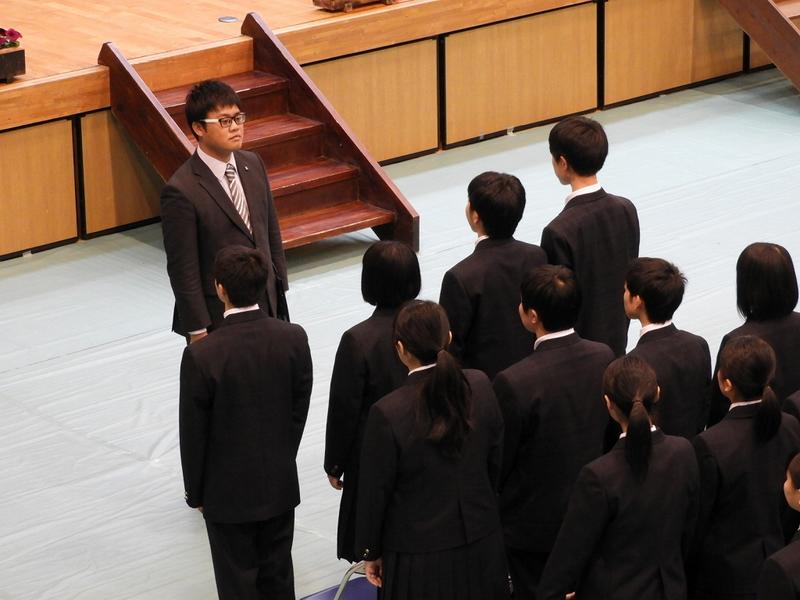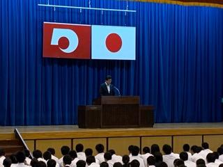 新任式がおこなわれ、小松教頭先生から挨拶がありました。