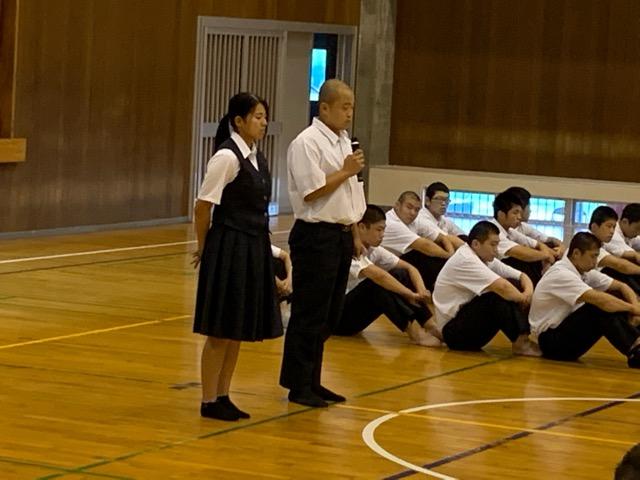 レスリングの全国大会に出場する生徒の選手推戴式行われました。全国大会頑張ってください。