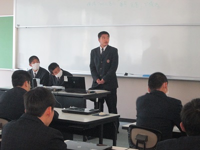 来年インターンシップに参加する1年生に向けて、どのような企業でどんな作業をしたか、経験から何を学んだかを1人1人発表しました。
