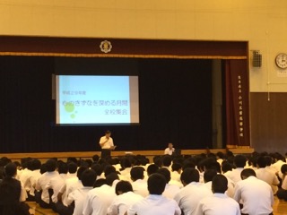はじめに教頭先生から、全校応援の意義や心構えなどの話がありました。