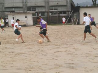 心配しましたグラウンドでの競技ですが、10時20分より始まりました。決していいコンディションではありませんが、生徒達は元気一杯プレーしています。