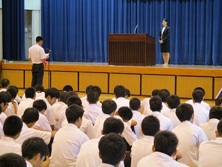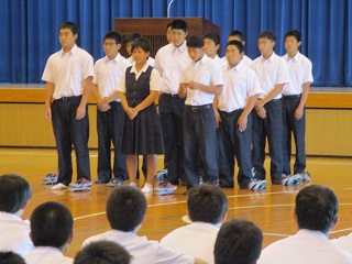 本日、陸上部、レスリング部の選手推戴式がおこなわれ、全校生徒の前で各部の代表より大会への意気込みを話してくれました。