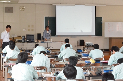 情報電子科では、毎年、一級技能士の方を招いて技能講習会を開催しています。8月に実施される国家検定試験である、技能検定受検に向けて計10回の予定で講習会を実施します。