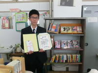 古澤君には賞状と副賞、受賞者の在学校には集英社文庫50冊セットが贈られました。