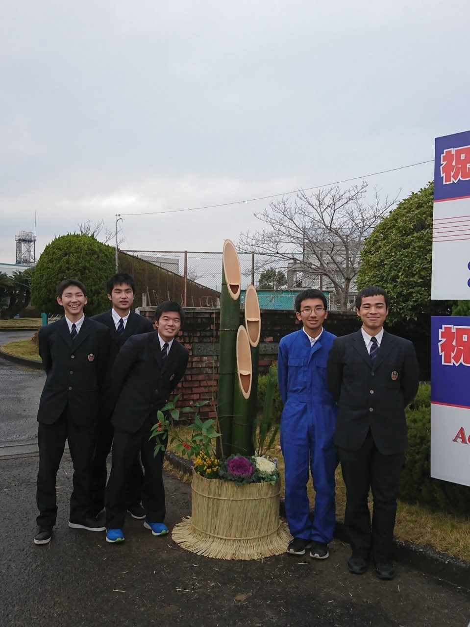 機械工作部(エコ電班)で門松をつくりました!高さが2mほどの大きな門松です。