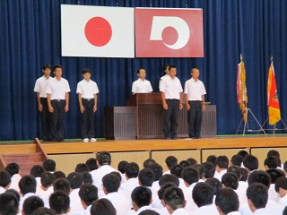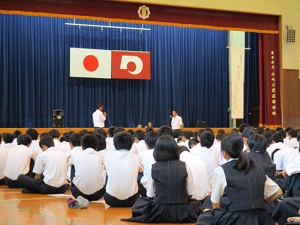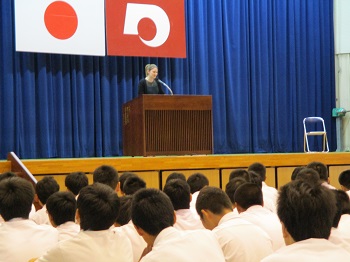 校長先生からは、学びと進路目標の達成についてと、震災支援に感謝をし、何事にも挑戦するようにとお話がありました。
