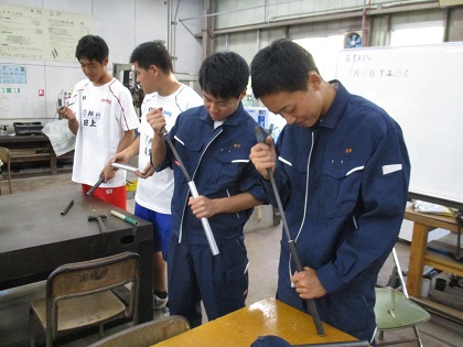 鞴(ふいご)祭りとは、火・鉄業の神に工場を清めてもらい、授業での安全を祈願します。