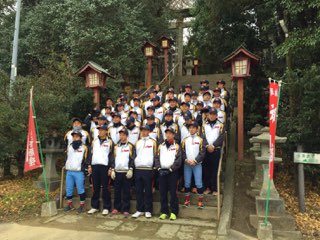 2018年のスタートは1月3日に近所の守山八幡宮に初詣に行き、今年の活躍を祈願しました。午前中にトレーニング中心の練習を行った後、保護者会が用意してくださったお昼ご飯をみんなで食べ、練習始めを終えました。