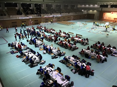 1月7日(日)、東京の日本工学院八王子専門学校でジャパンマイコンカーラリー2018全国大会が開催され、本校からAdvancedクラスで機械科3年森本舜也君、Basicクラスに情報電子科3年松本昌弘君が出場しました。寒い中での大会ではありましたが、体育館の中は熱気にあふれ、全国から参加した124台が全国の頂点を目指して、必死にマシンの調整に当たっていました。