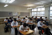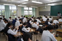現在、教室棟が「長寿命化改修工事」に伴い、3年生の1階部分が工事に入ったため、3年生はそれぞれの学科の特別教室に一時的にホームルームを移動して朝読や授業を行っています。
