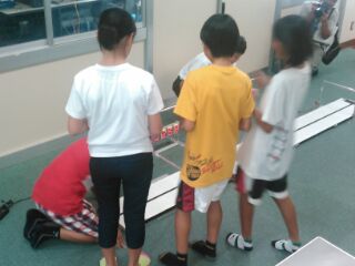 コースアウトしてしまうために、そのプログラミングを高校生のお兄さん達に相談しアドバイスをもらいなが
