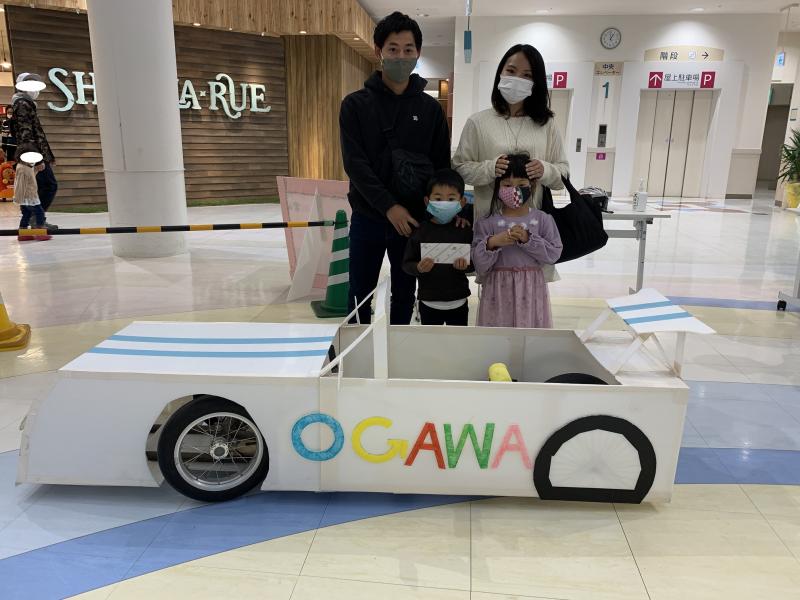 それから、試乗をしてくれたお子さまにはくじを引いていただきました!あめ玉やお菓子があたるくじですが、なんと一等はイオンの商品券!見事一等を引き当てたお子さまは、ご家族と一緒に記念撮影を行いました。