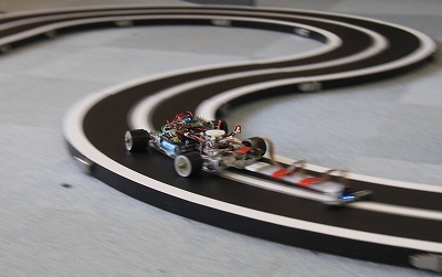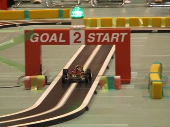 競技はAdvancedクラス、Basicクラスともに予選走行が2回行われ、advanceクラスはその中の上位8台、Basicクラスは上位4台が決勝トーナメントに進出するという形で行われました。森本君は予選2回を走行し、76台中20位、Basicクラスの松本君が48台中26位という結果でした。2台とも決勝トーナメントに進出することはできませんでしたが、大会前日まで熱心にマシンの調整に励み、大きなトラブルを起こすことなくこれまで取り組んできた成果を発揮することができました。二人ともご苦労さまでした。