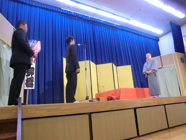 プロの噺家による落語に、生徒職員ともども大笑い。