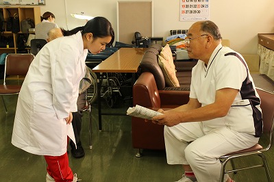 またデイケアに来られている方と一緒に体操をしたり、お話をしたりしています。