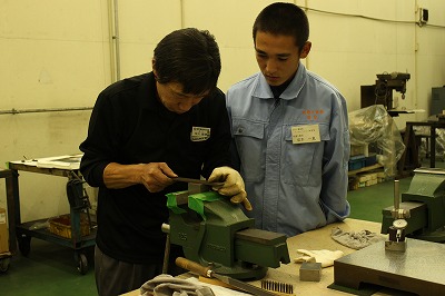 手仕上げの作業で、マンツーマンでご指導頂いていました。