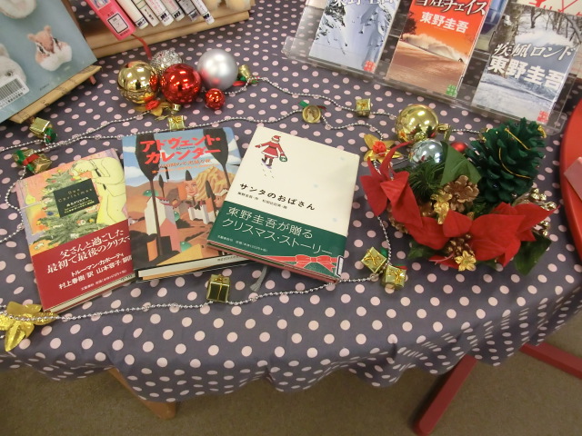 図書館もクリスマス 投稿日時 : 2017/12/05 図書 図書委員がクリスマスツリーを飾ってくれました。廊下から見ると、こんな感じです。メインの展示コーナーもクリスマス特集です。外はすっかり冬模様ですが、暖かい図書館でクリスマス気分を味わってください。