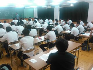 暑い中ですが、生徒、職員が真剣に受講しています。
