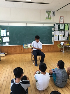9月に今年度2回目の読み聞かせを実施しました。今回は図書委員の1年生5名が参加しました。みんな初挑戦だったので、緊張しながらもがんばりました。小学生のみなさんは一生懸命に聴いてくれてとても良い経験になりました。