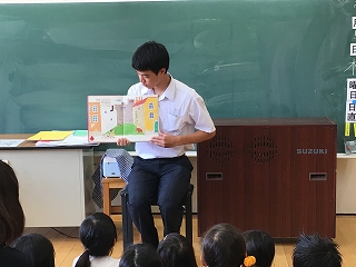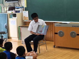 9月に今年度2回目の読み聞かせを実施しました。今回は図書委員の1年生5名が参加しました。みんな初挑戦だったので、緊張しながらもがんばりました。小学生のみなさんは一生懸命に聴いてくれてとても良い経験になりました。