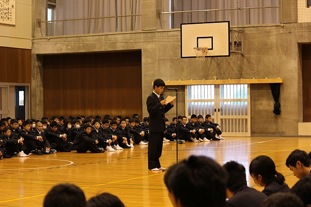 対面式では、2、3年生と新入生とが初めての顔あわせでした。